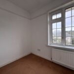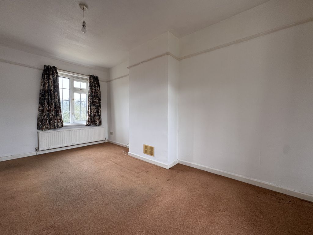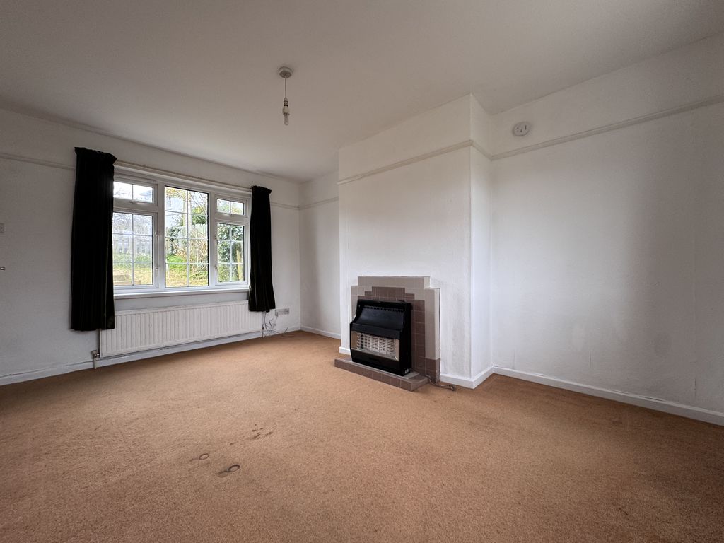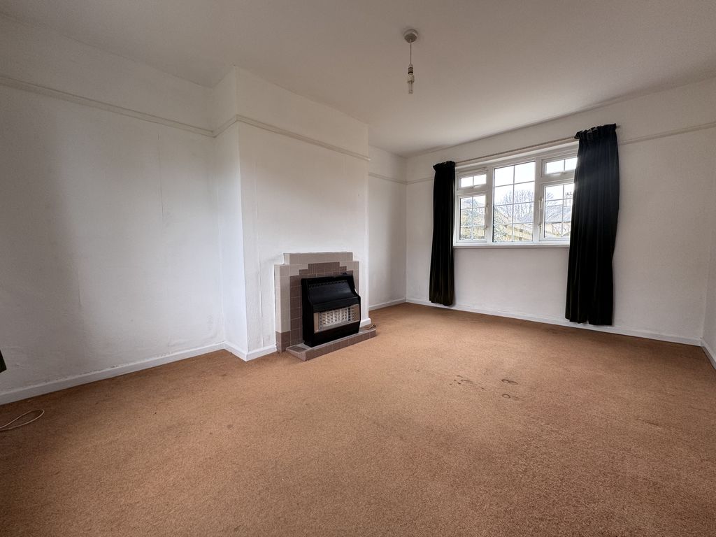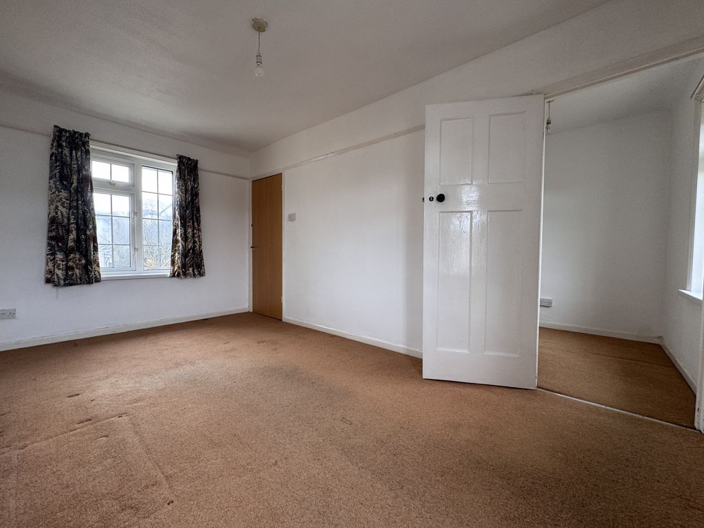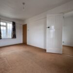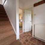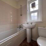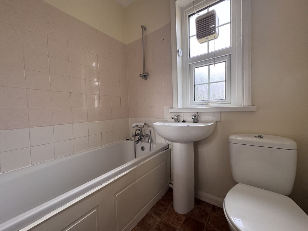 The property opens into a welcoming entrance hall, ideal for coats and shoes. To the left, you’ll find a bright and generously sized living room. To the right is the family bathroom, fitted with a white suite comprising a bath with overhead shower, WC, and pedestal wash basin.