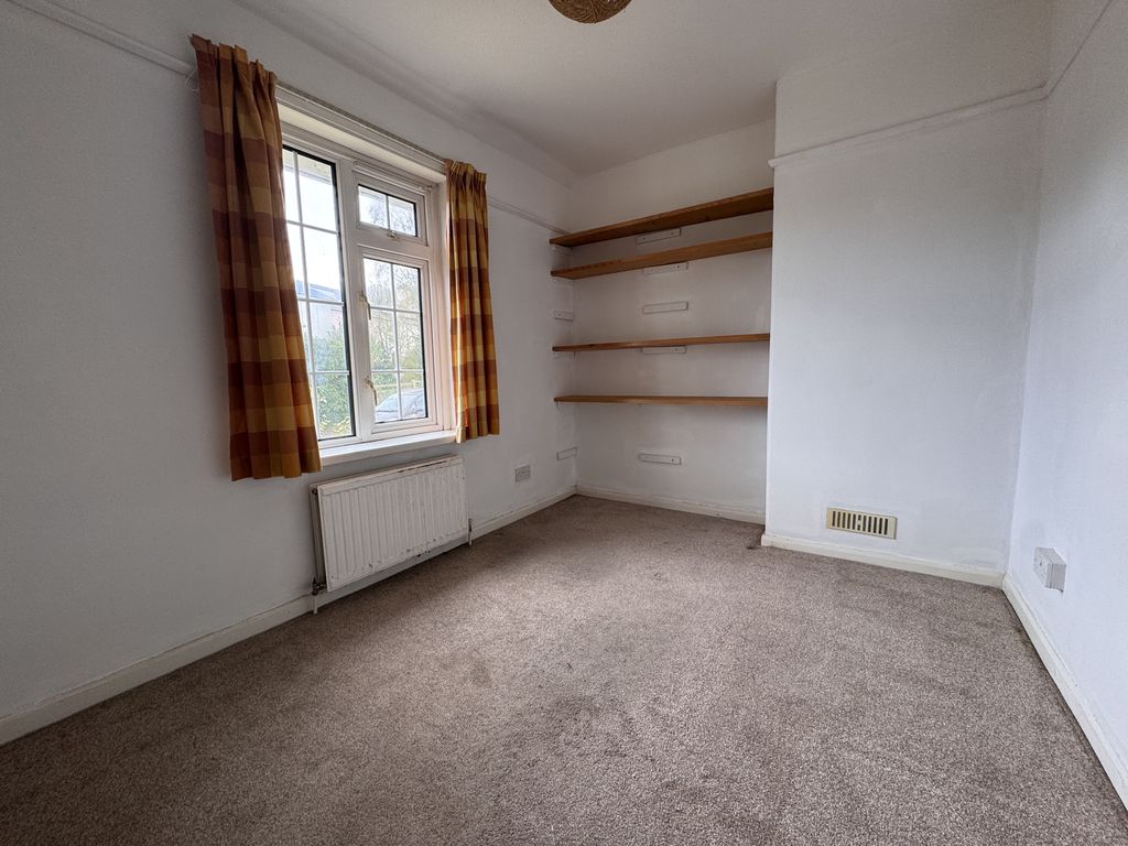 Upstairs, the landing leads to three bedrooms. The master bedroom benefits from an airing cupboard housing the Benchmark vented cylinder and additional shelving. There is a second double bedroom with built-in shelving, along with a single bedroom, ideal as a child’s room, office, or guest space.