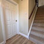 Upstairs are two double bedrooms, both offering ample built in storage, as well as bathroom with bath and over head electric shower.