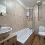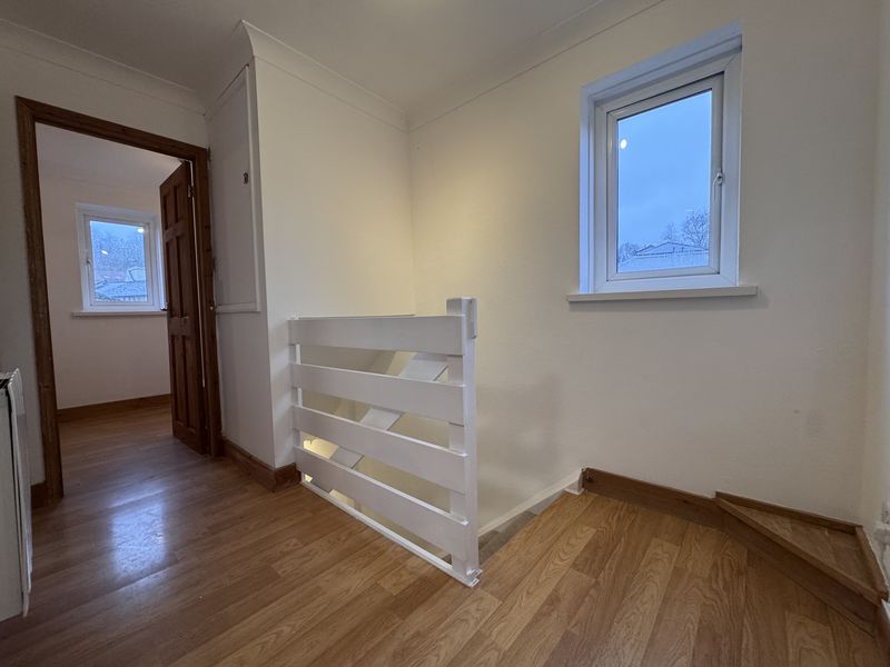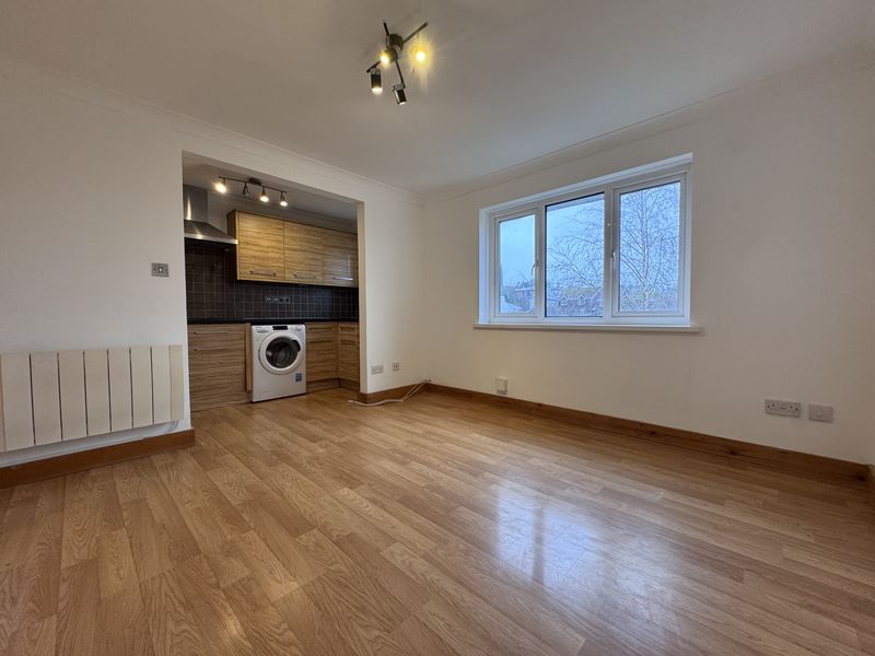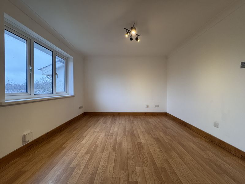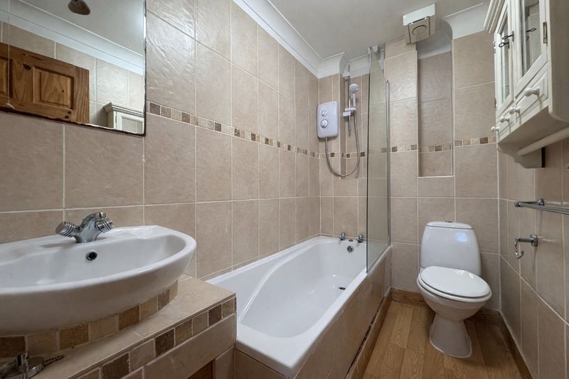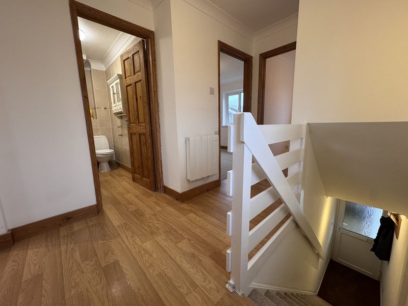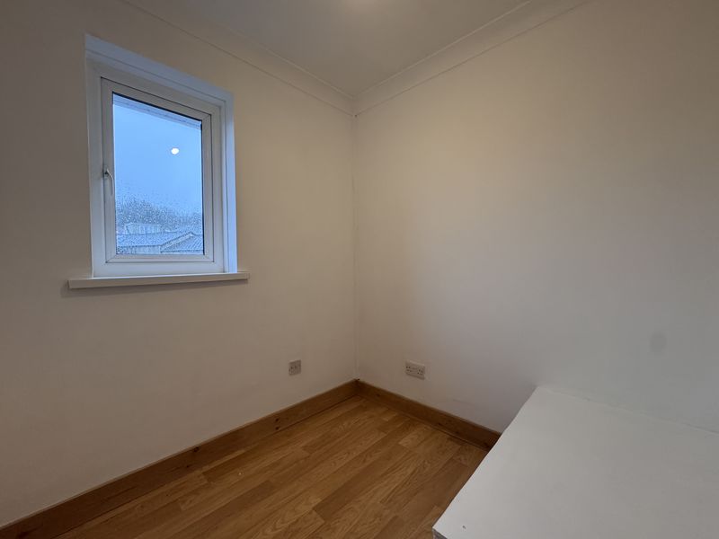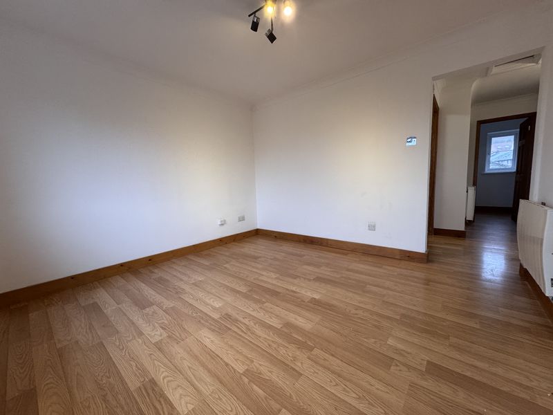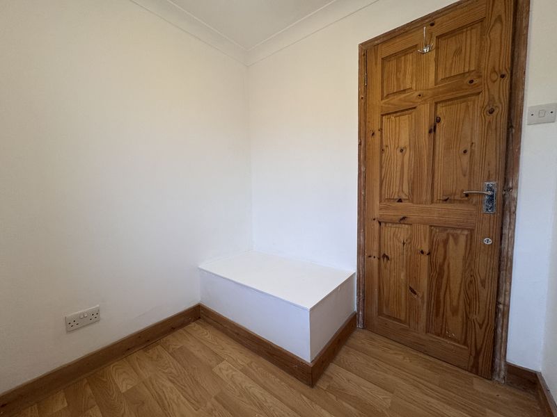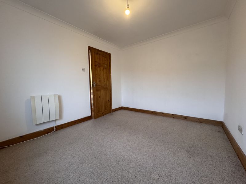 The property further benefits from a modern fitted bathroom, comprising a bath with overhead electric shower, a well-proportioned main double bedroom, and a second smaller bedroom, ideal for use as a home office. The landing also provides an airing cupboard housing the hot water cylinder. As a top-floor flat, the property additionally benefits from a loft hatch, offering useful storage potential.